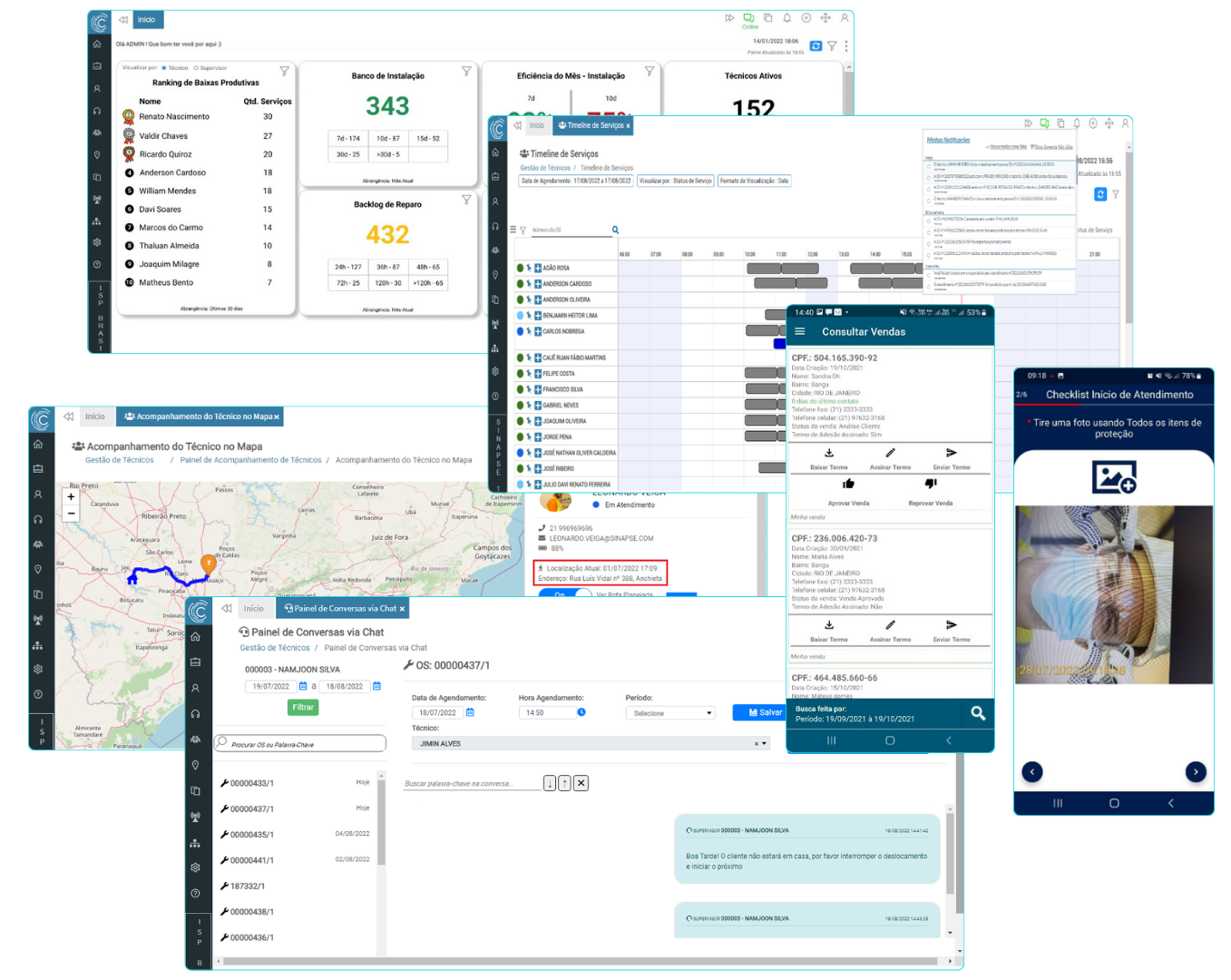 Execução em campo com critério: roteirização por skill, região e janela, com Checkpoint para registrar rota prevista e realizada.